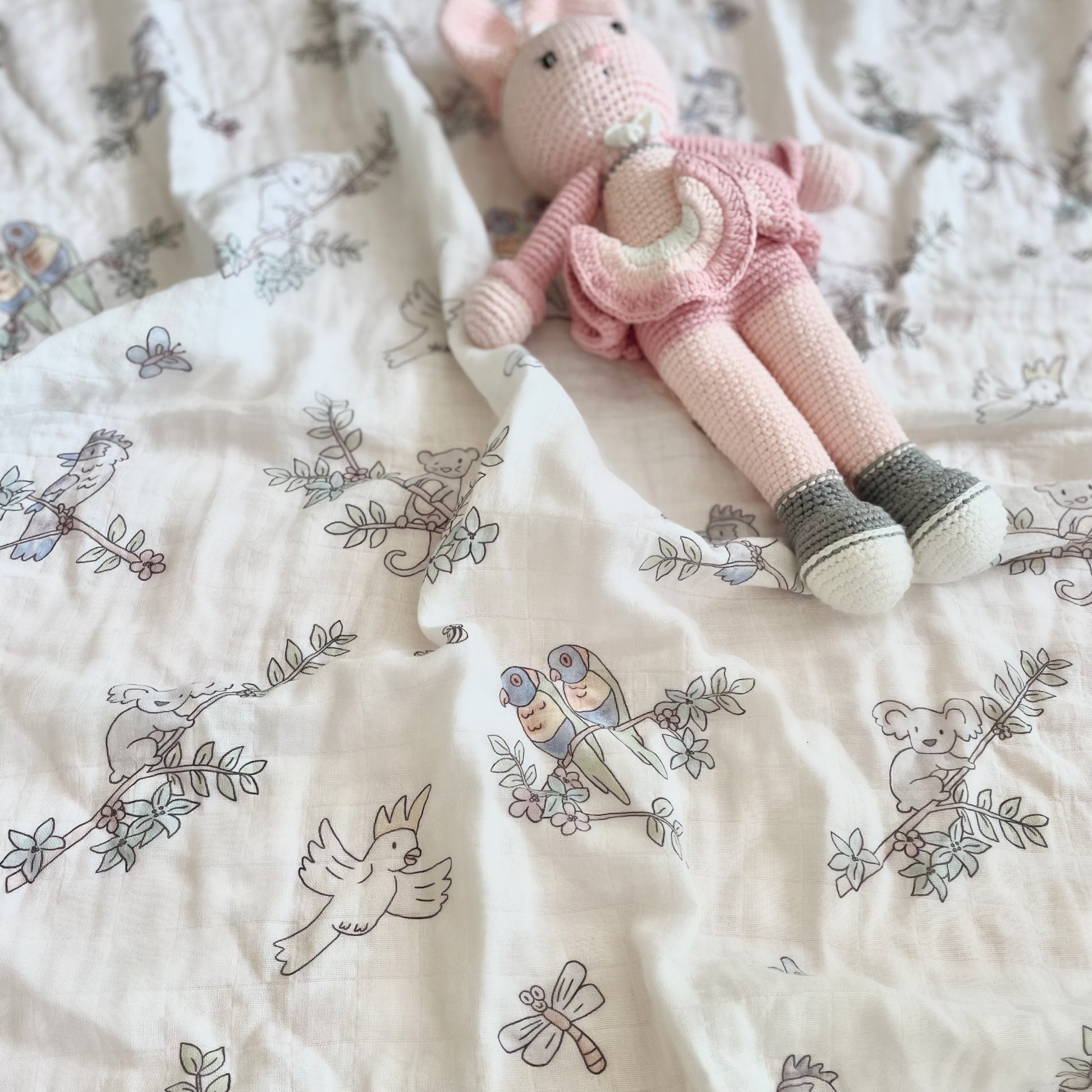 Swaddle blankets are such a versatile must-have for every baby and parent. Use one for to swaddle wrap baby, as a light blanket, a pram cover, for sun protection, as a privacy blanket for breastfeeding, a change mat, or a light rug for tummy time.