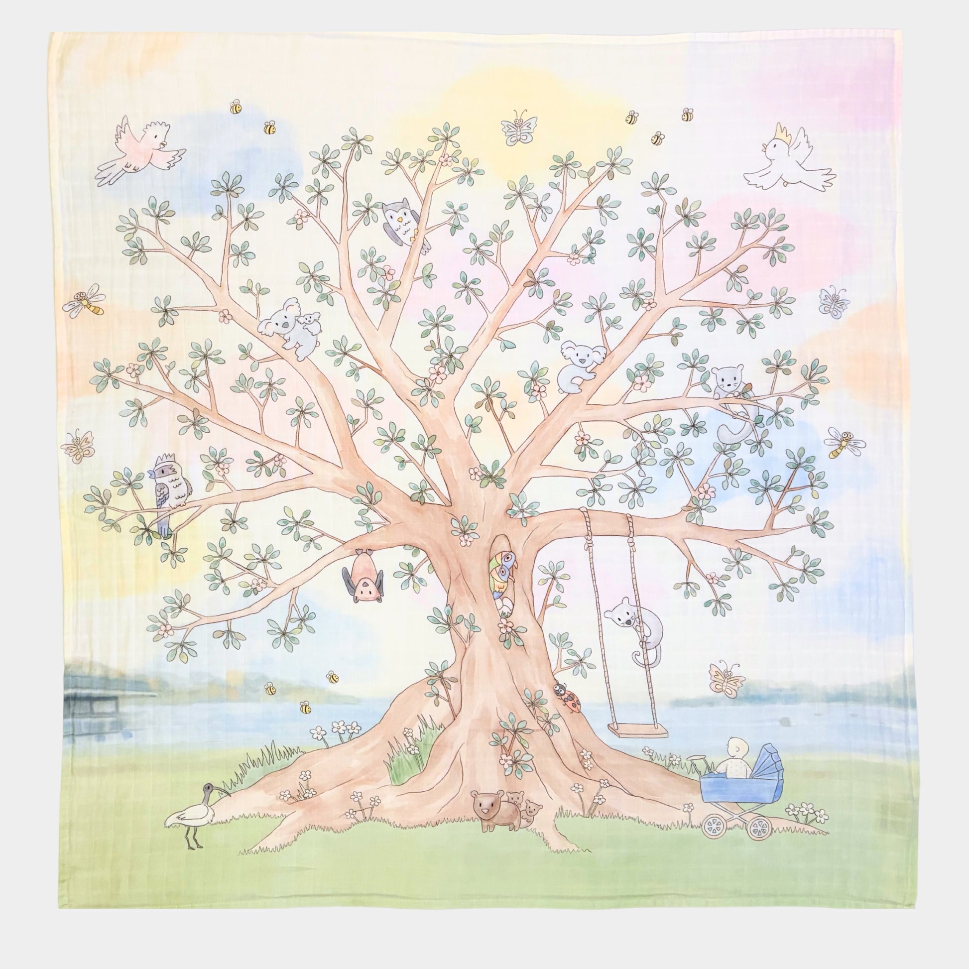 Available in a series of whimsical designs, a Treasure Baby organic cotton swaddle blanket is a beautiful addition to any nursery or nappy bag. The perfect gift for a new baby.